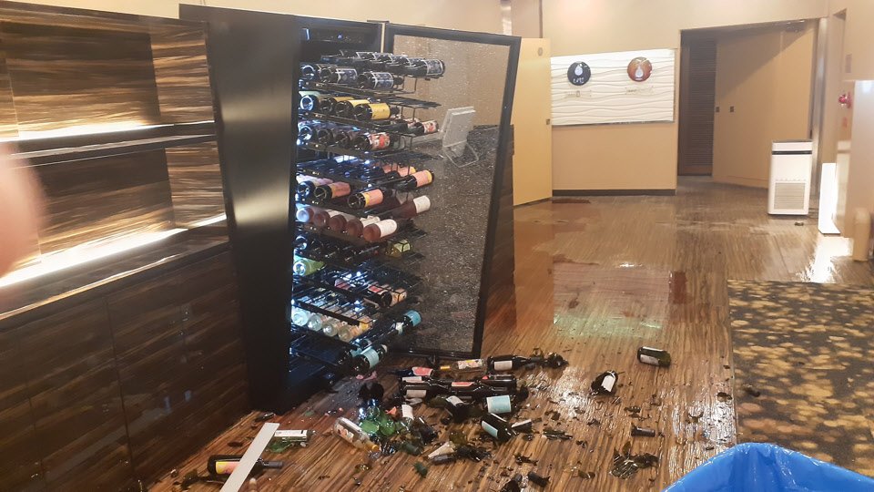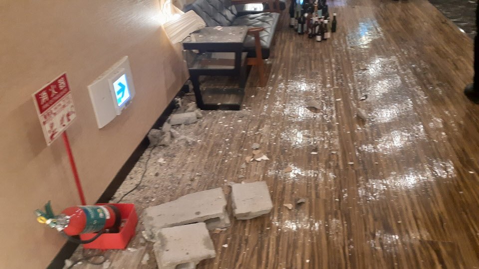 館内のがれきやガラスの破片を従業員が清掃した上で、食事提供を始めた