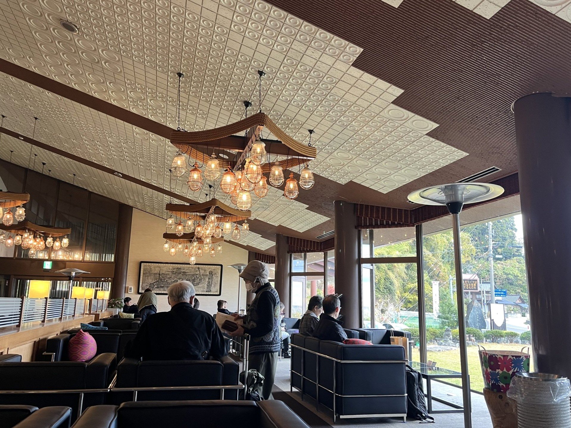 うみあかり本館のロビー。地震の際はいさり火をモチーフにした照明が激しく揺れた