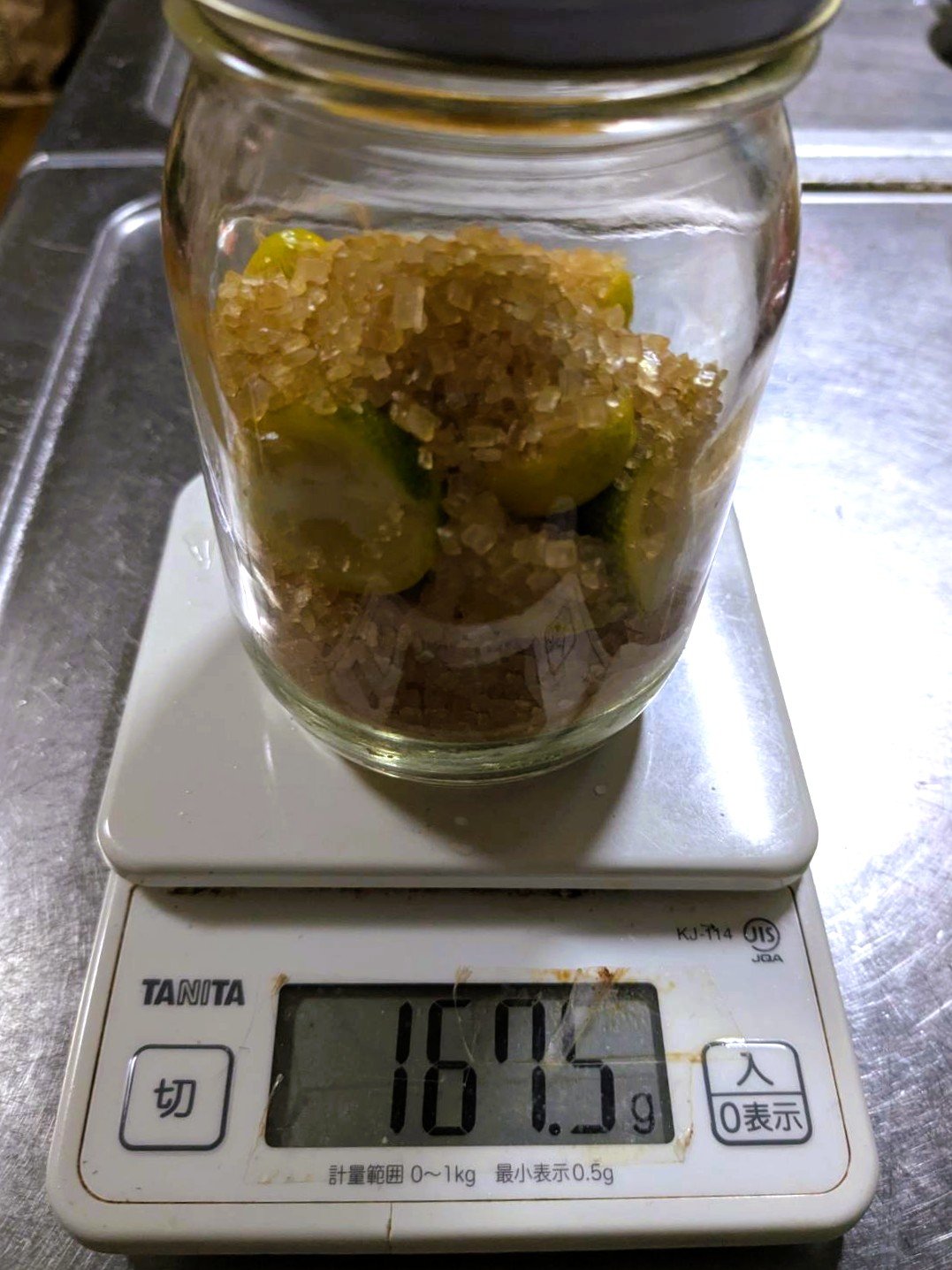 ③金柑と同量の砂糖を用意し、保存瓶に、金柑と砂糖を交互に数回に分けて入れ込むだけ。