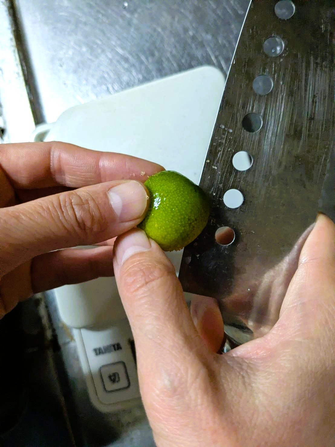 ①金柑に、ぐるりと包丁で切れ込みを入れます。味をしみ込みやすくさせるためです。