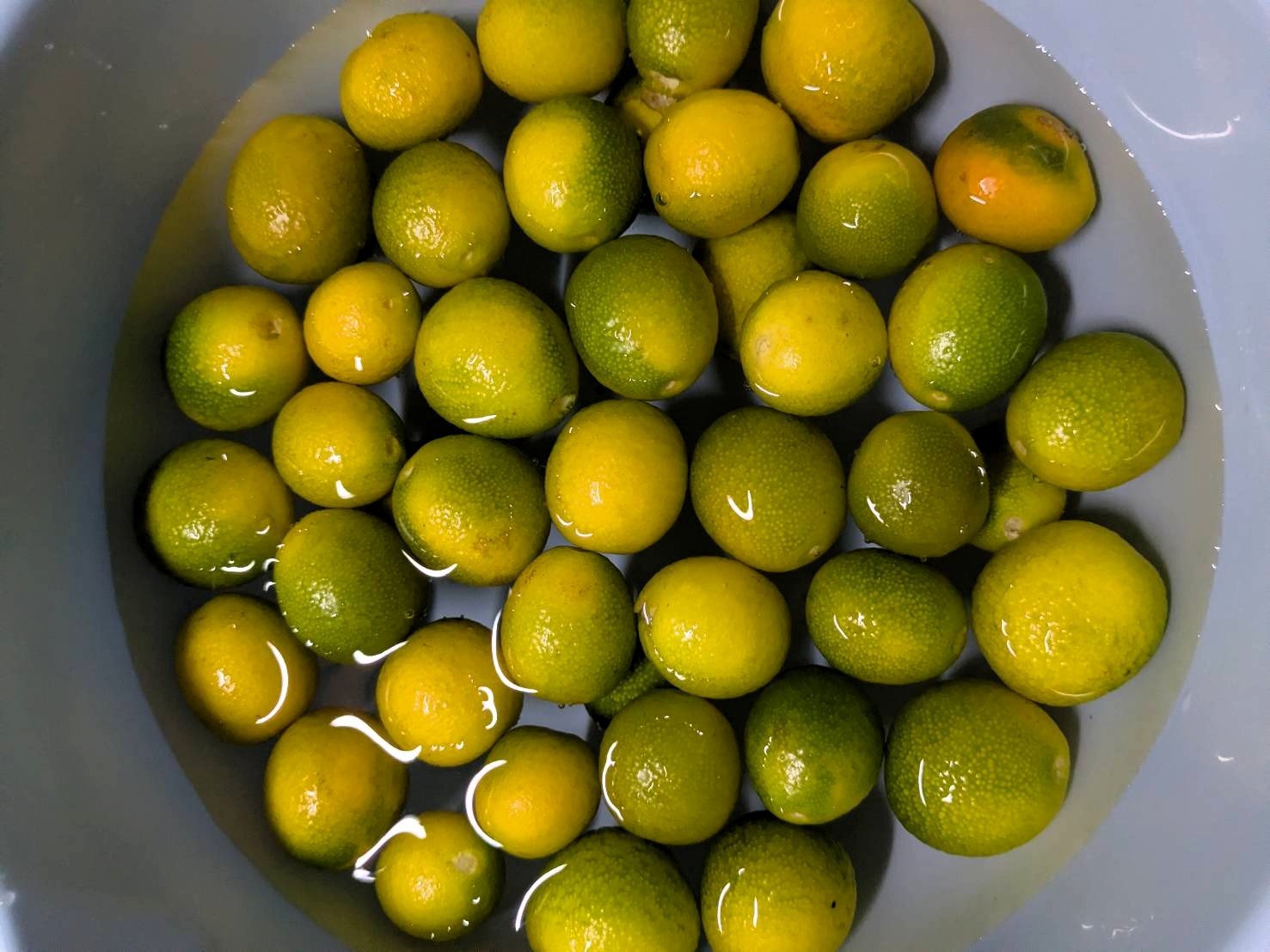 まず、金柑を洗って、1〜2時間ほど水につけてアク抜きします。
