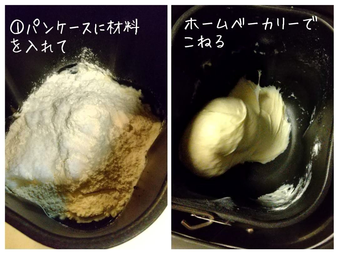 ① こねる作業は大変なのでホームベーカリーにおまかせしました。文明の力ってありがたい!