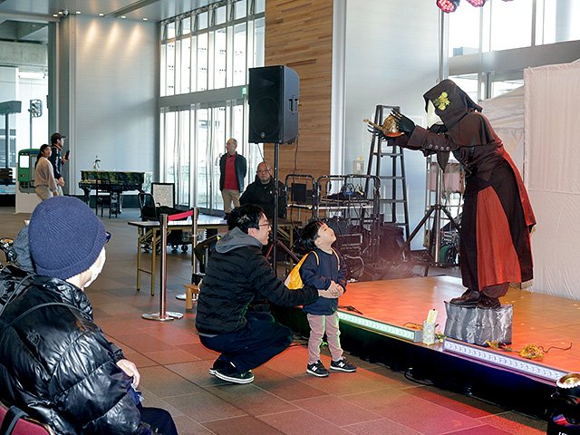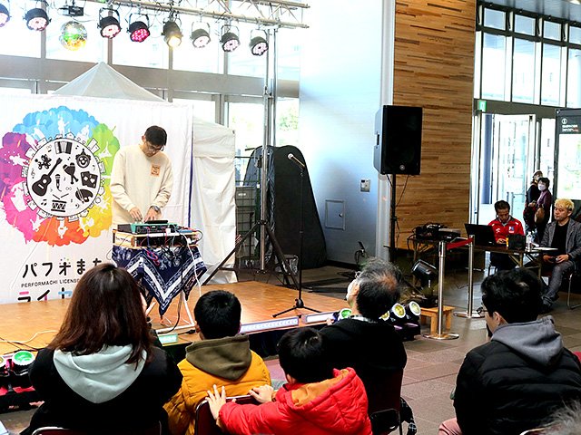 「パフォまちライセンス」を新たに持ったアーティストによる公開パフォーマンスが20日、富山駅南北自由通路で行われた。県内外の11組が大道芸や音楽演奏など多彩なステージを繰り広げた。