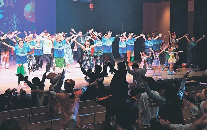 能登半島地震の復興チャリティーイベント「がんばろう氷見! クリスマス・ズンバ・パーティー」が21日、富山県の氷見市芸術文化館で開かれた。3歳から84歳までの約70人がクリスマスソングなどで楽しく踊り、来場者に元気を届けた。会場には募金箱を設置。集まった善意は市に寄付し、復旧復興に役立ててもらう。