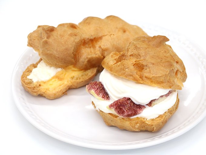 米粉フルーツシューサンド(450円)は、シュー皮もクリームも米粉で作っている。縦長のしゅう坊(360円)は子どもが食べやすいサイズ