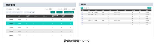車両の運行を采配する管理者は、画面上で登録した全ての車両の現在位置や作業状況(走行中、休憩中など)、積載状態の目安をリアルタイムに把握できます。