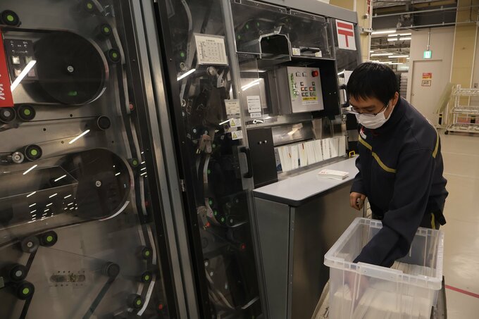 同郵便局には県内で投函(とうかん)された年賀状がいったん集められる。23日は郵便番号や住所を自動で読み取る「書状区分機」9台を稼働させ、配達エリア別に仕分けていた。