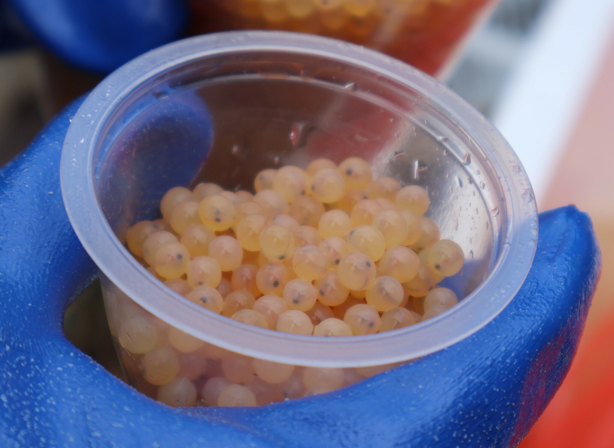 発眼卵は、稚魚の眼が確認できるふ化直前の卵。稚魚の状態で放流するより水温や酸素量などの環境に早く適応でき、より天然に近い成魚に育つとされる。利賀村漁協は河川環境の保全や釣り資源の充実を目的に稚魚の放流を続けており、より質の高いイワナを育てようと発眼卵に着目した。