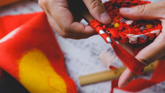 キモノヤーンは捨てられる着物を使った世界初(※当社調べ)の着物のアップサイクルヤーンです。着物を洗浄し、ほどき、縫い合わせ、ほつれないように裁断する工程の大部分を手作業でヤーンにしています。編み物や織物、小物づくり等、様々なハンドメイドの素材としてお使いいただけます。