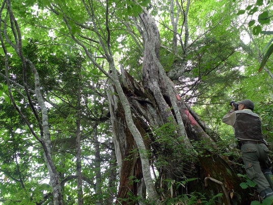 深洞湿原は、山之村の自然豊かな湿地帯で、トウヒ、クロベ等の針葉樹林、ミズナラやトチノキの巨樹、 ブナの原生林が広がる森です。立ち向かっている木々の造形美、季節ごとに変化するその壮大な美しさと力強さが魅力です。