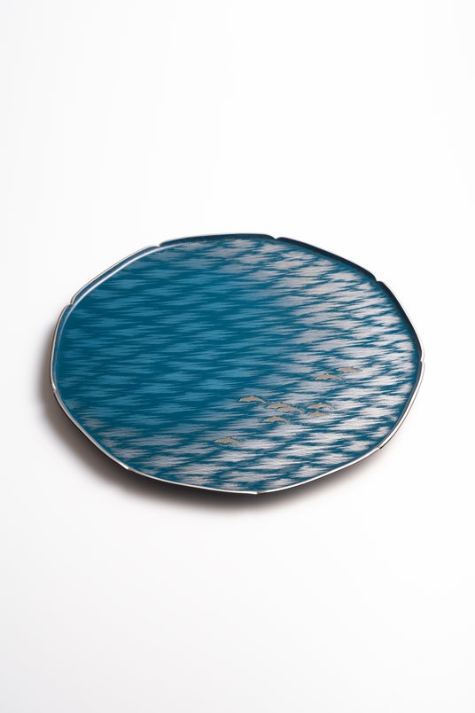 水尻清甫 沈金乾漆盤「海原」 φ40×h3.5cm