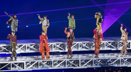 最新アルバム「音故知新」をひっさげ、全国5都市を回るドームツアー中のアイドルグループ「Snow Man(スノーマン)」が東京ドームで公演した。交流サイト(SNS)でも話題となった「カリスマックス」など全33曲を歌唱し、9人そろった切れのあるパフォーマンスで5万5千人の観客を盛り上げた。