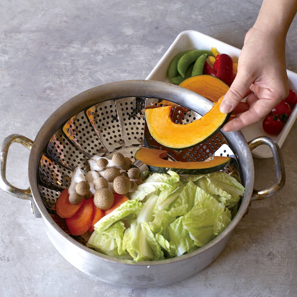 ステンレス フリーサイズ蒸し器 18cm~24cm用