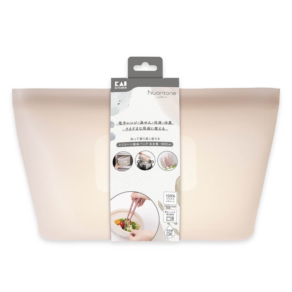 ■シリコーン保存バッグ 自立型 1000ml ベージュグレー