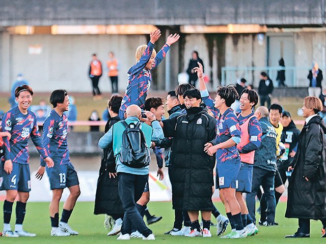 サッカーのカターレ富山が、最終節で劇的なJ2残留を決めた。J3降格圏の18位で迎えた11月29日の秋田戦、3―1で迎えた後半追加タイムにMF亀田がゴール。残留に必須の3点差以上をつけて勝利し、17位の熊本が引き分けたため、最後の最後にドラマのような展開で富山に歓喜を運んだ。