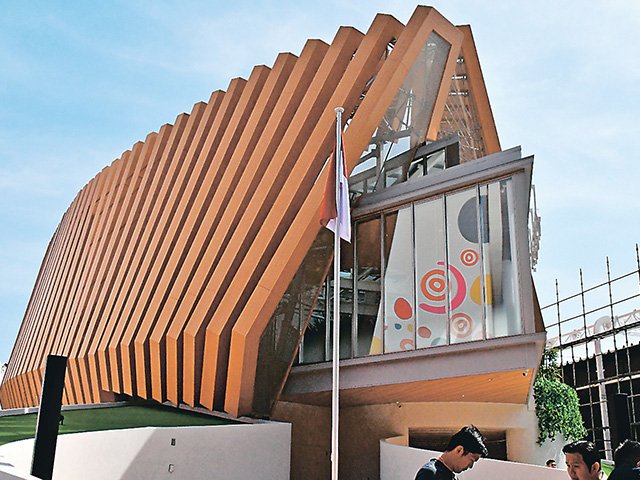 木造建築設計のATA(滑川市北野)は、イタリア、フィリピン、インドネシアの3館の設計と建設を行った。木造船をイメージしたインドネシア館は、石川組(砺波市太郎丸)が施工、真栄工芸(富山市東老田)が外部装飾を担った。