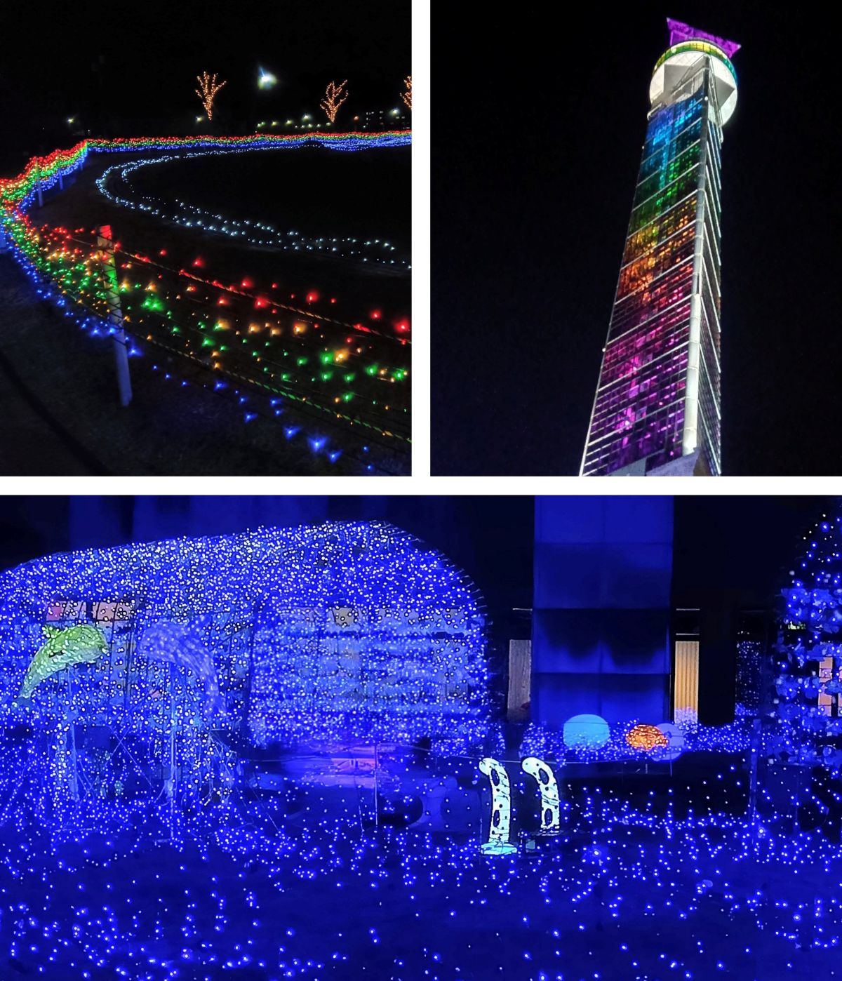 華やかなイルミネーションで、テンションが上がります。ライトアップされたチューリップタワーやツリー、列車などが映った水面も素敵でした🥰