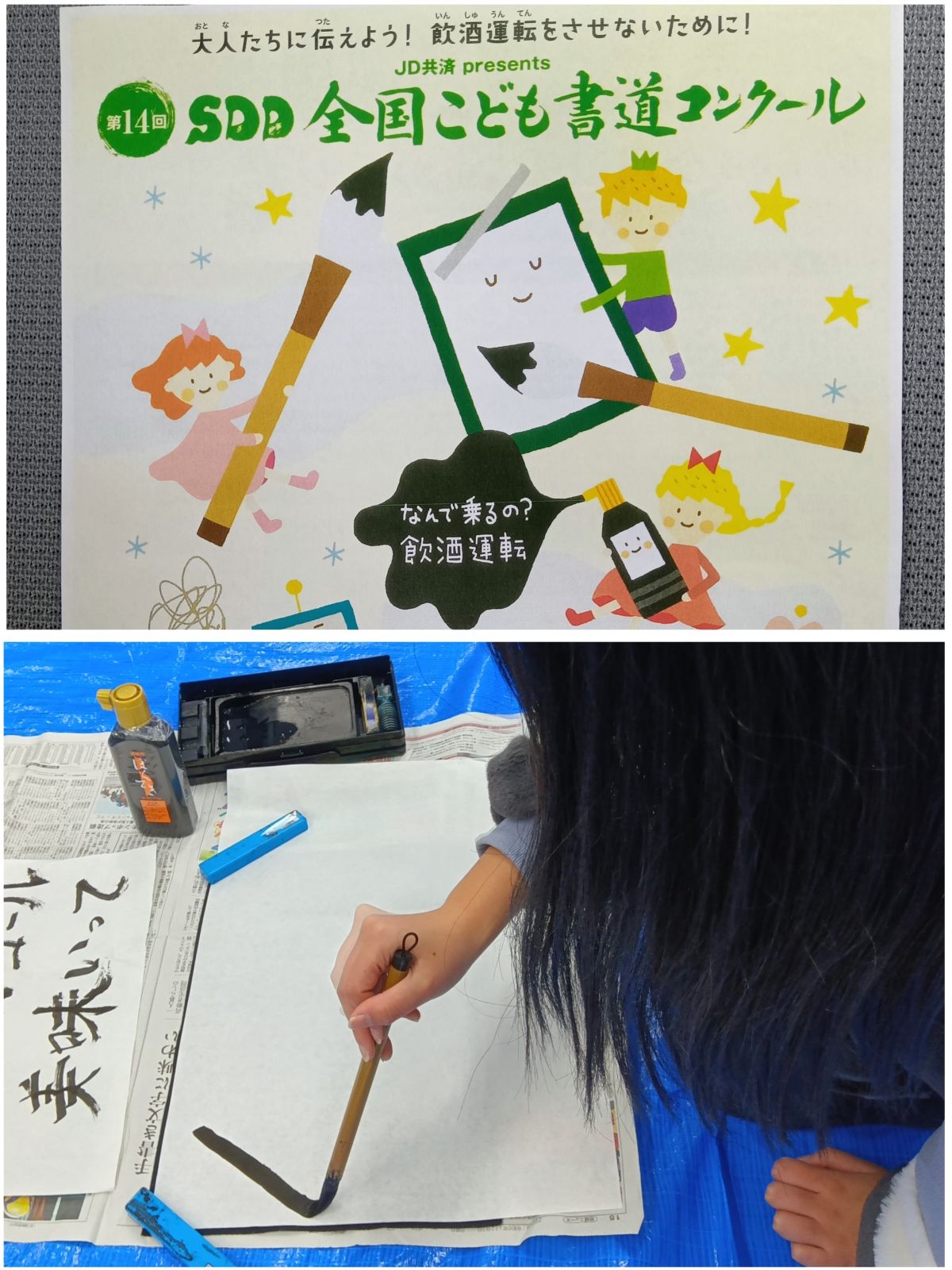 その後、飲酒運転撲滅のための「書道コンクール」作品を書きました。文字以外もOKなので、みなさん絵や記号などを使い、個性的な作品に仕上げていました✨