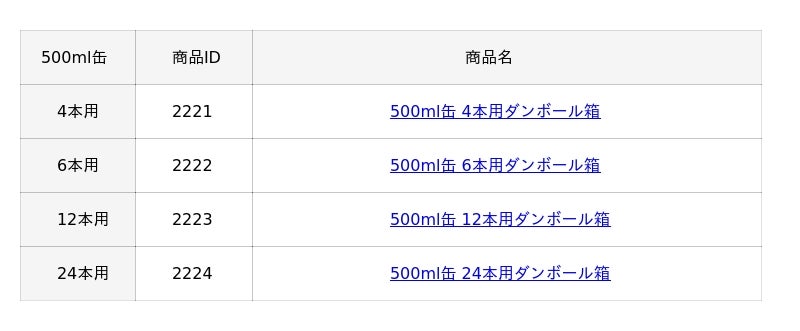 500mlの飲料缶(お酒・ジュースなど)を立ててピッタリ入るサイズで設計したダンボール箱の販売を開始。梱包資材店やホームセンターなどでは取り扱いの少ない規格のダンボール箱だ。