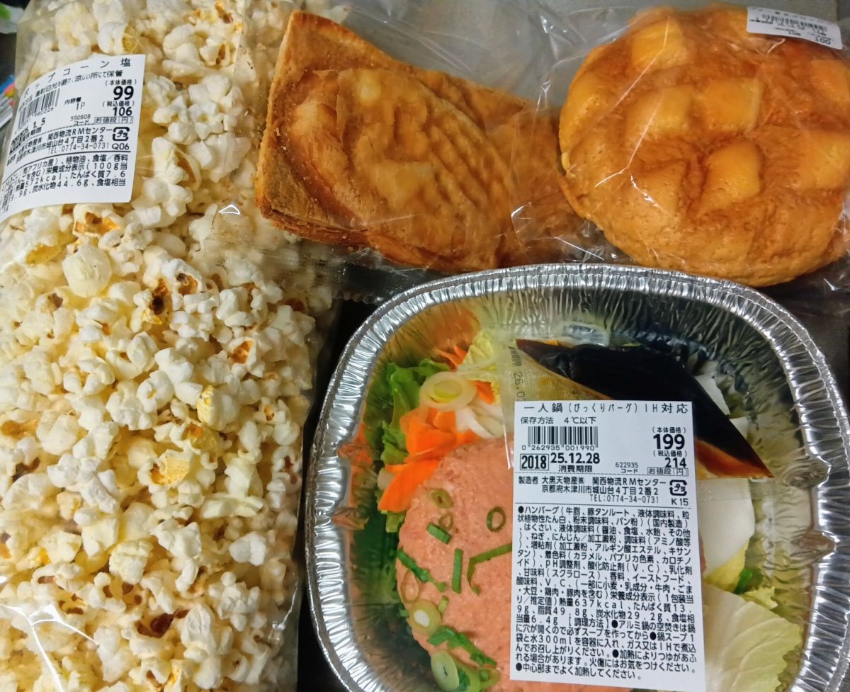 特大ポップコーン、一人鍋セット(ハンバーグ)、メロンパンなどお買い得な商品がズラリ。
