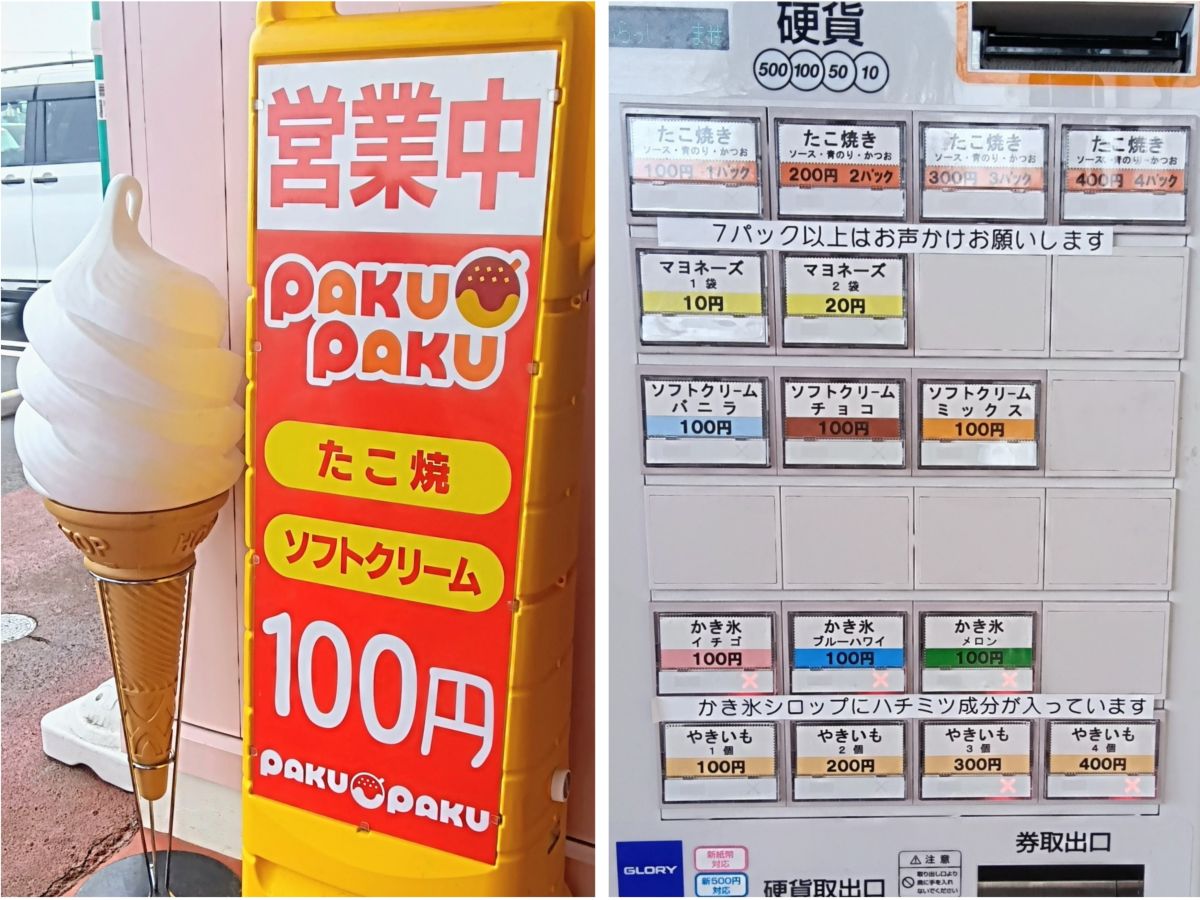 さらに驚いたのが、スーパー併設のお店で、たこ焼き・ソフトクリーム・焼きいもがなんと100円で買えること‼️