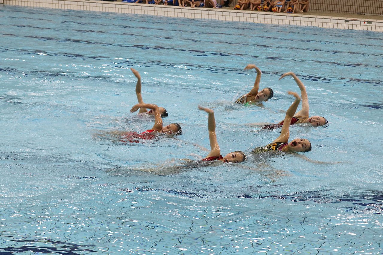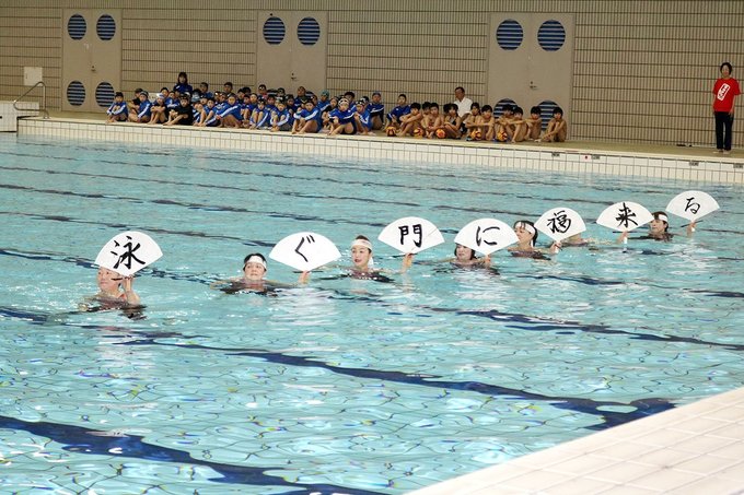 このほか、富山スイミングクラブと富山ウォーターポロクラブの児童生徒が競泳、水球、アーティスティックスイミングの模範演技を発表した。