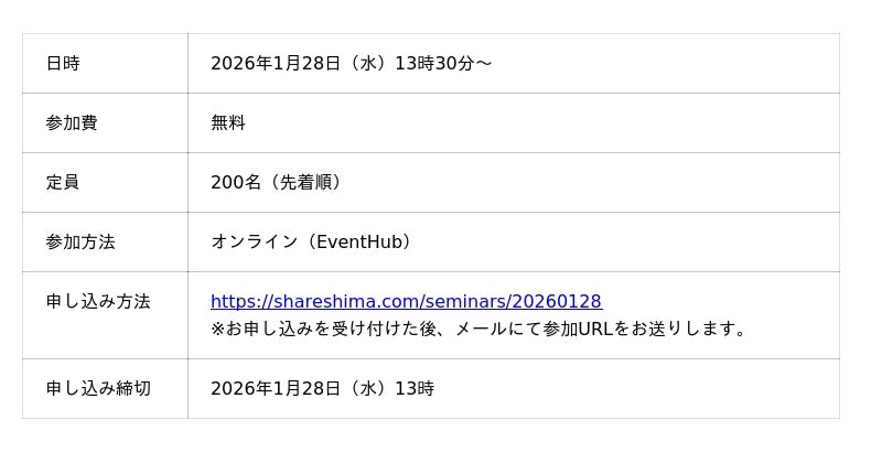 1月28日(水)開催|シェアシマは食品業界に携わる方のためのオンラインセミナーを定期開催中