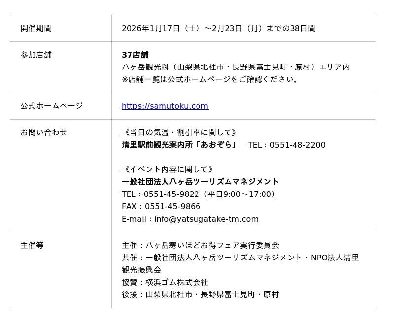 そして今年も「ヨコハマタイヤ アイスガードPresents 八ヶ岳 寒いほどお得フェア2026」を2026年1月17日(土)より2026年2月23日(月祝)まで開催します。