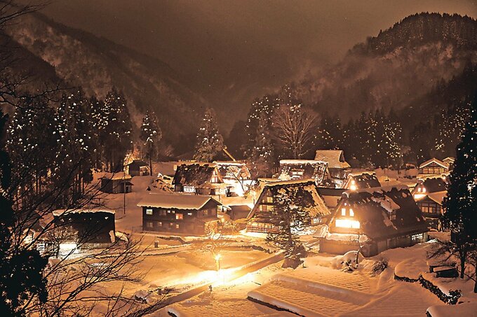 富山県南砺市平地域の世界遺産・相倉合掌造り集落で7日、窓明かりで観光を楽しんでもらうイベント「窓灯(あか)り鑑賞日」が行われた。淡い光が冬の山里を照らし、幻想的な情景が広がった。