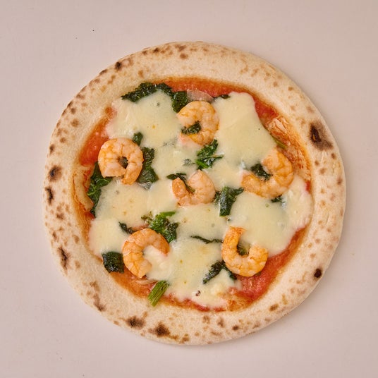 ケールとエビのピザ