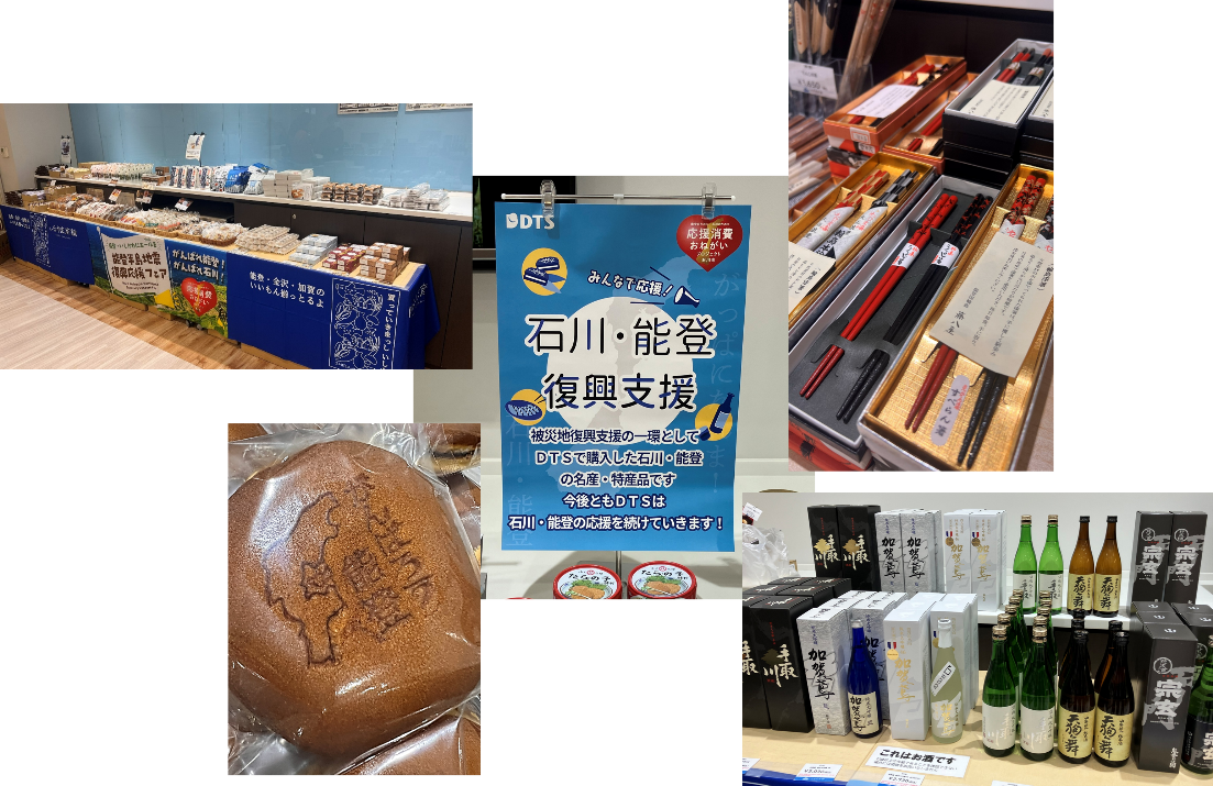 株式会社DTS(東京都中央区、代表取締役社長 北村 友朗、以下 DTS)は、能登半島地震(2024年1月)、能登半島豪雨(2024年9月)により甚大な被害を受けた石川県能登半島の被災地復興支援を目的に、2025年12月19日(金)本社ビル内で「みんなで応援!石川・能登物産展」を昨年に続き開催しました。今年度は、DTSグループ全体での支援活動へと拡大させ、グループをあげて盛り上がりました。
