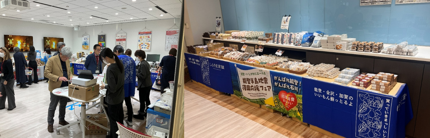 能登半島地震(2024年1月)、能登半島豪雨(2024年9月)により甚大な被害を受けた石川・能登に対して、石川県が推進する「能登のために、石川のために 応援消費おねがいプロジェクト」に賛同し、「みんなで応援!石川・能登物産展」を開催しました。
