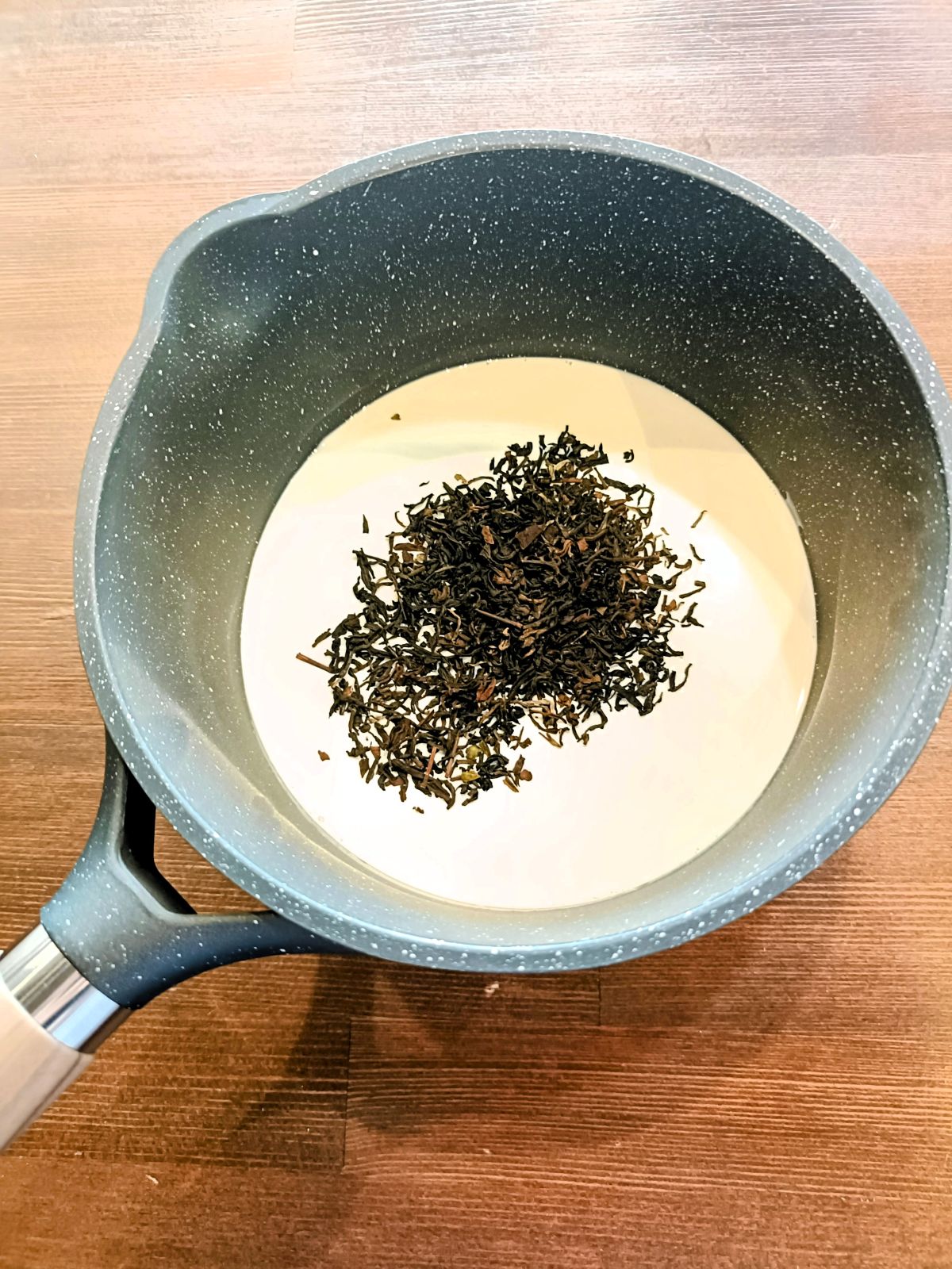 ②紅茶の茶葉を加え、5〜10分ほどふたをして香りを移す。