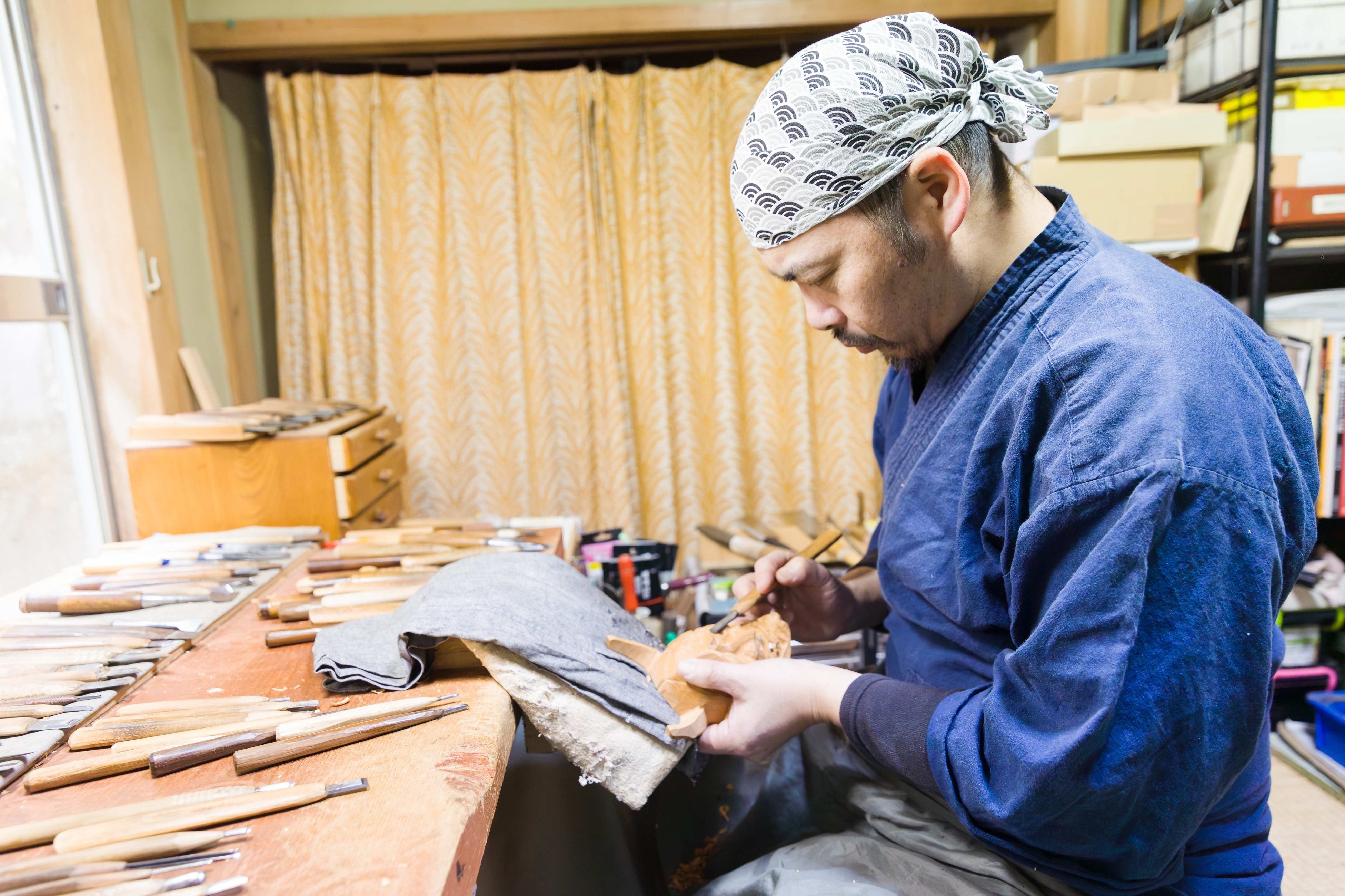 一位一刀彫制作風景 (鷲塚彫刻)