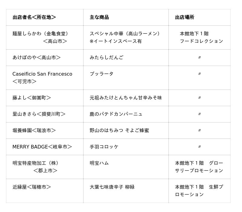 ・ 催事名:岐阜県 県産品販売会「岐阜探訪 ―食と匠の共演― 」