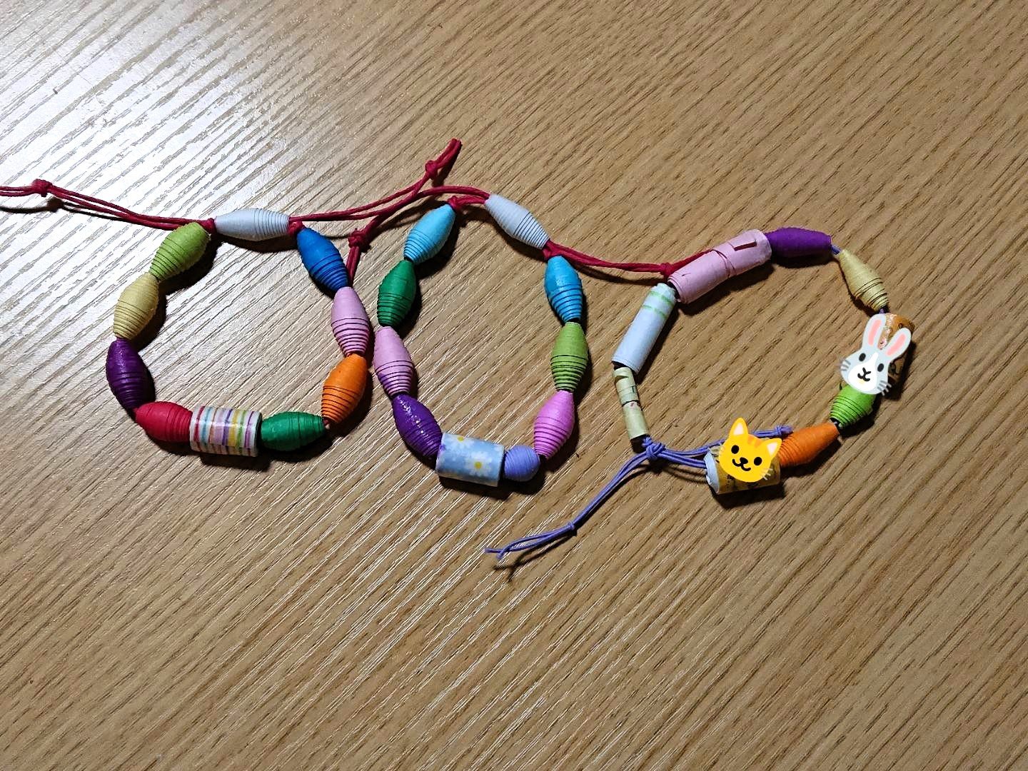 以前、児童館のイベントでペーパービーズを使ったブレスレット作りをしました。