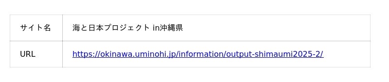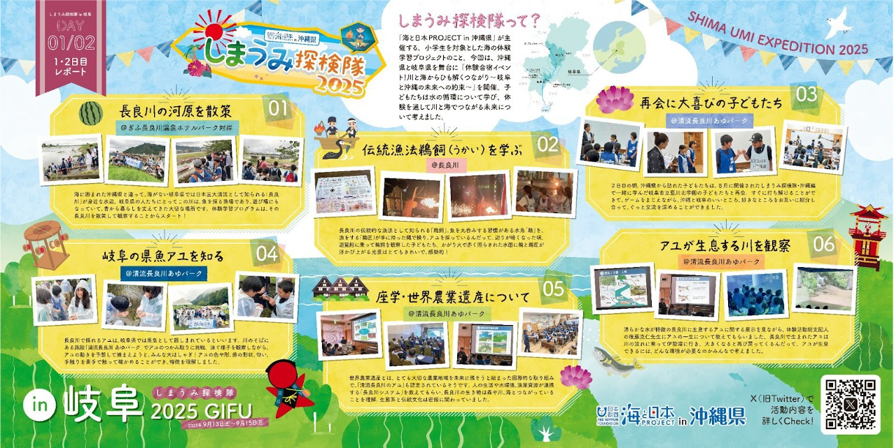 一般社団法人 海と日本PROJECT in沖縄県は、2025年8月・9月に開催した体験合宿イベント、川と海からひも解くつながり~岐阜と沖縄の未来への約束~【海と日本プロジェクト×しまうみ探検隊2025】で学習成果発表にて使用した「ポスター」と、教材「学習メモノート」を公式サイトで2026年1月9日より公開中です。