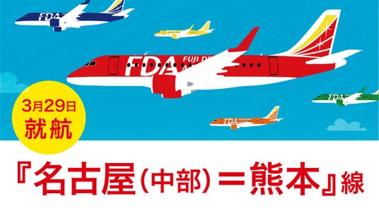 株式会社フジドリームエアラインズ(略称:FDA、本社:静岡県静岡市、代表取締役社長: 本田 俊介)は、夏ダイヤの運航開始日である2026年3月29日(日)より『名古屋(中部)=熊本』線の新規開設を決定いたしました。