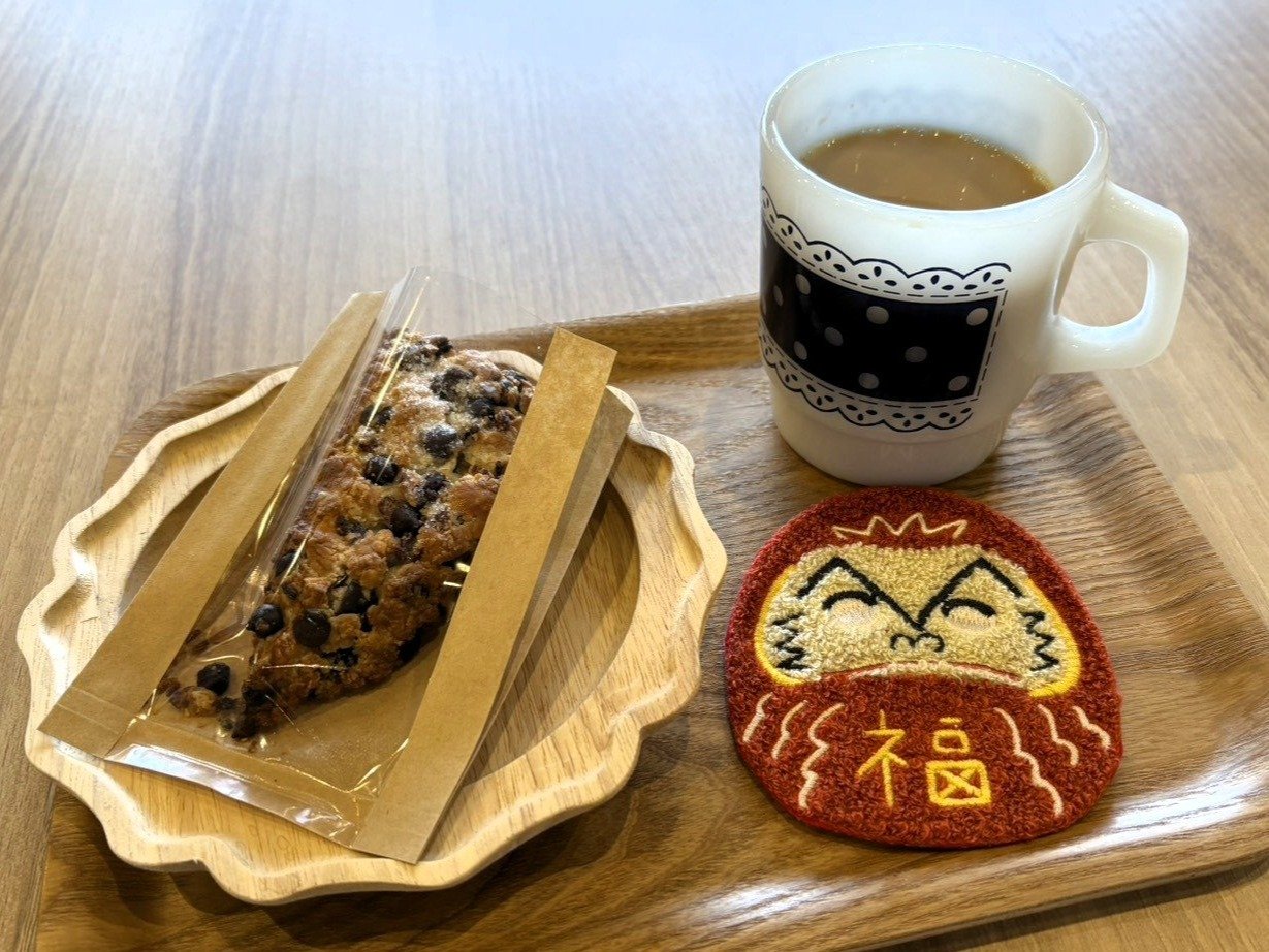 今回はチョコスコーンとカフェオレをいただきました。スコーンは温めてから出してくれて、焼きたての食感が楽しめました!