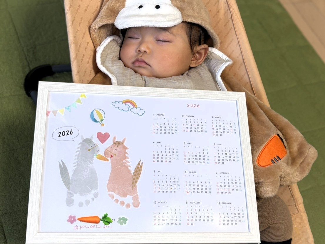 ワークショップでは赤ちゃんの足型を取ります。今回は両足です。この足型が馬に大変身✨