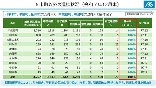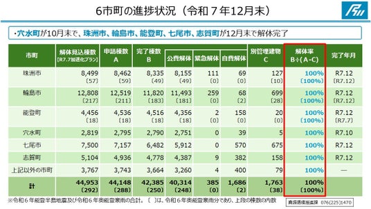 発災直後の令和6年2月に、解体見込み棟数を約22,500棟と推計し、その後、3度にわたり見直しを行い、昨年7月には約45,000棟となり、当初の見込みの約2倍となりましたが、10月末の解体完了目標は変えずに取り組んできました。