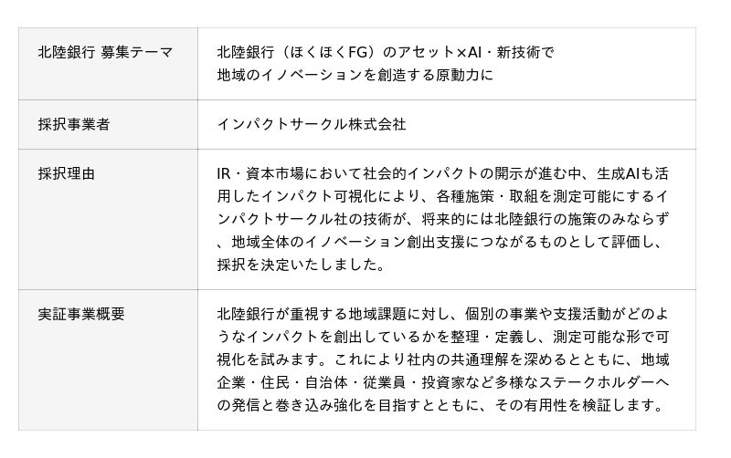 株式会社北陸銀行(頭取 中澤 宏)、株式会社北日本新聞社(代表取締役社長 蒲地 誠)、株式会社インテック(代表取締役社長 疋田 秀三)および株式会社Relic(代表取締役CEO 北嶋 貴朗)は、民間主導の富山共創オープンイノベーションプログラム「Innovation QUEST in TOYAMA 2025」(※)に取り組んでいます。