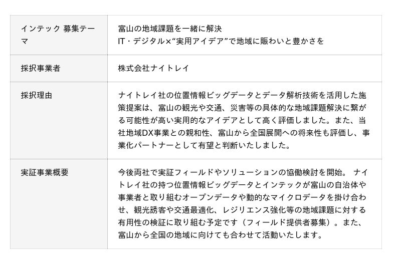 ※「Innovation QUEST in TOYAMA 2025」は、富山県の地域課題解決や新産業創出を目的とし、地元企業と全国のスタートアップ・研究機関等が共創する仕組みづくりの第一歩です。