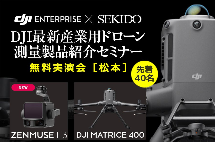 DJI(ディージェイアイ)正規販売代理店としてドローンビジネスの最前線を支える株式会社セキド(本社:東京都港区、代表取締役:大下貴之、以下「セキド」)は、セキド新潟上越(運営:株式会社フォト・オフィスオーツー、新潟県上越市)と共催し、2026年2月13日(金)に長野県松本市で、最新の産業用ドローンを活用した空中写真測量・レーザー測量の実演と比較検証を行う「DJI最新産業用ドローン測量製品紹介セミナー in 松本」を開催します。