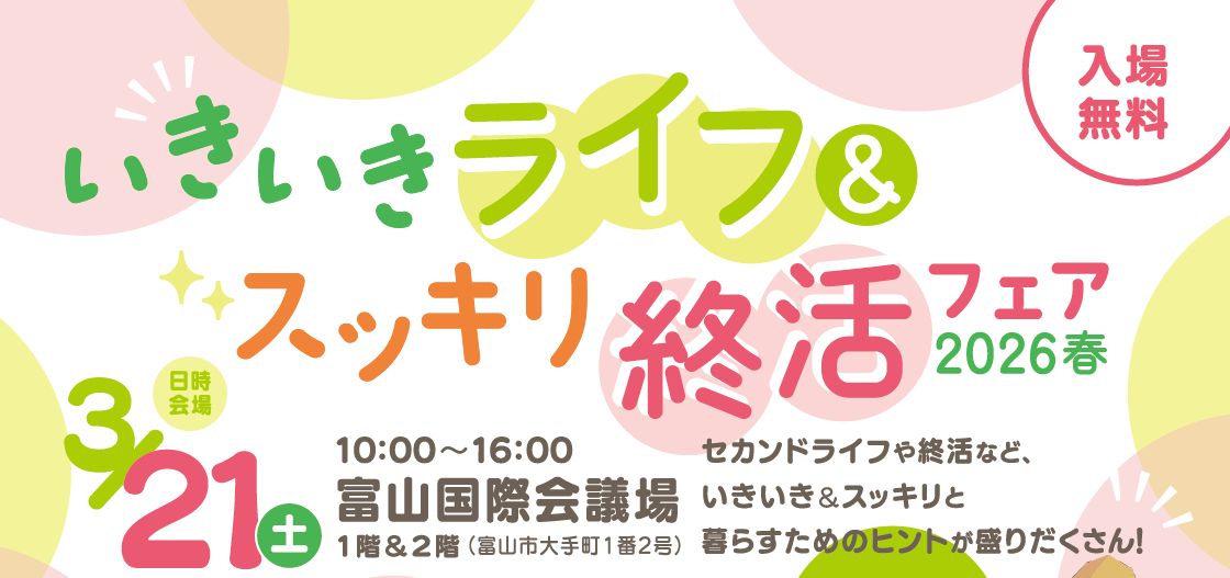 ■本イベントに参加を申し込まれたお客様の個人情報は、当社が取得し、本イベントに関するご案内・ご連絡に利用します。■当社は、本イベントの協賛セミナー・相談会に参加するお客様の個人情報を、当該相談ブースやセミナーの協賛社(以下「協賛社」)に提供し、協賛社はお客様の個人情報を、セカンドライフや終活に関連する取扱商品・サービスのご案内に利用することがあります。協賛各社の個人情報の取り扱い方針等は、各社のウェブサイト等でご確認ください。協賛社によっては個人情報をグループ会社等と共同利用しており、お客様の個人情報が上記の目的で利用されることがあります。■お客様が相談ブースやセミナーに参加を申し込んだ時点で、当該相談ブースやセミナーに当選したお客様の個人情報を当社が協賛社に提供することについて、お客様が同意したものとみなします