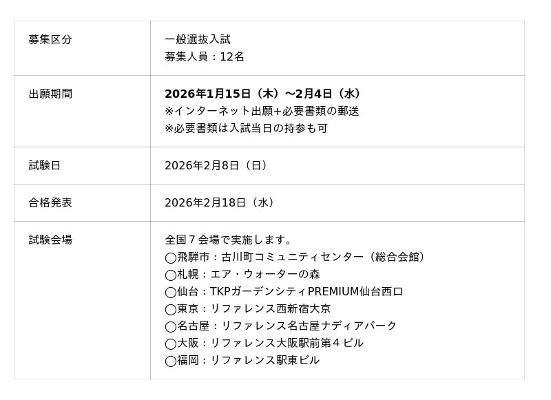 このたび、大学運営者である学校法人CoIU(岐阜県飛騨市、理事長:井上博成)は、2026年入学者を対象とした一般選抜入試の出願受付を、2026年1月15日より開始しました。