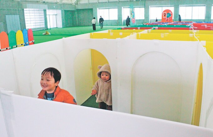 富山県の入善町中央公園内の屋内多目的施設「わくわくドーム」に24日、段ボールの迷路が設置され、子どもたちがゴールを目指して元気よく駆け回った。2月1日まで楽しめる。