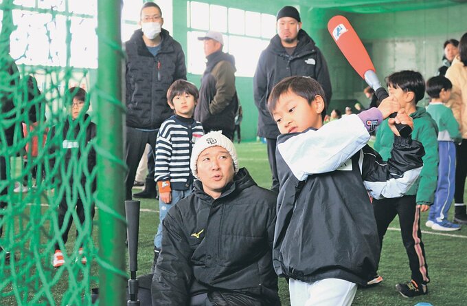 子どもたちは軟らかいボールを使ったティー打撃や的当てを体験した。打撃ではバットを鋭く振り込み、杉谷さんから「いいスイング」「みんな上手だね」と声をかけられていた。