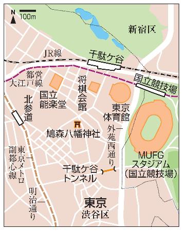 駅の南側に出ると、空飛ぶ円盤を思わせる東京体育館、木材をふんだんに使ったMUFGスタジアム(国立競技場)の威容に目を奪われた。