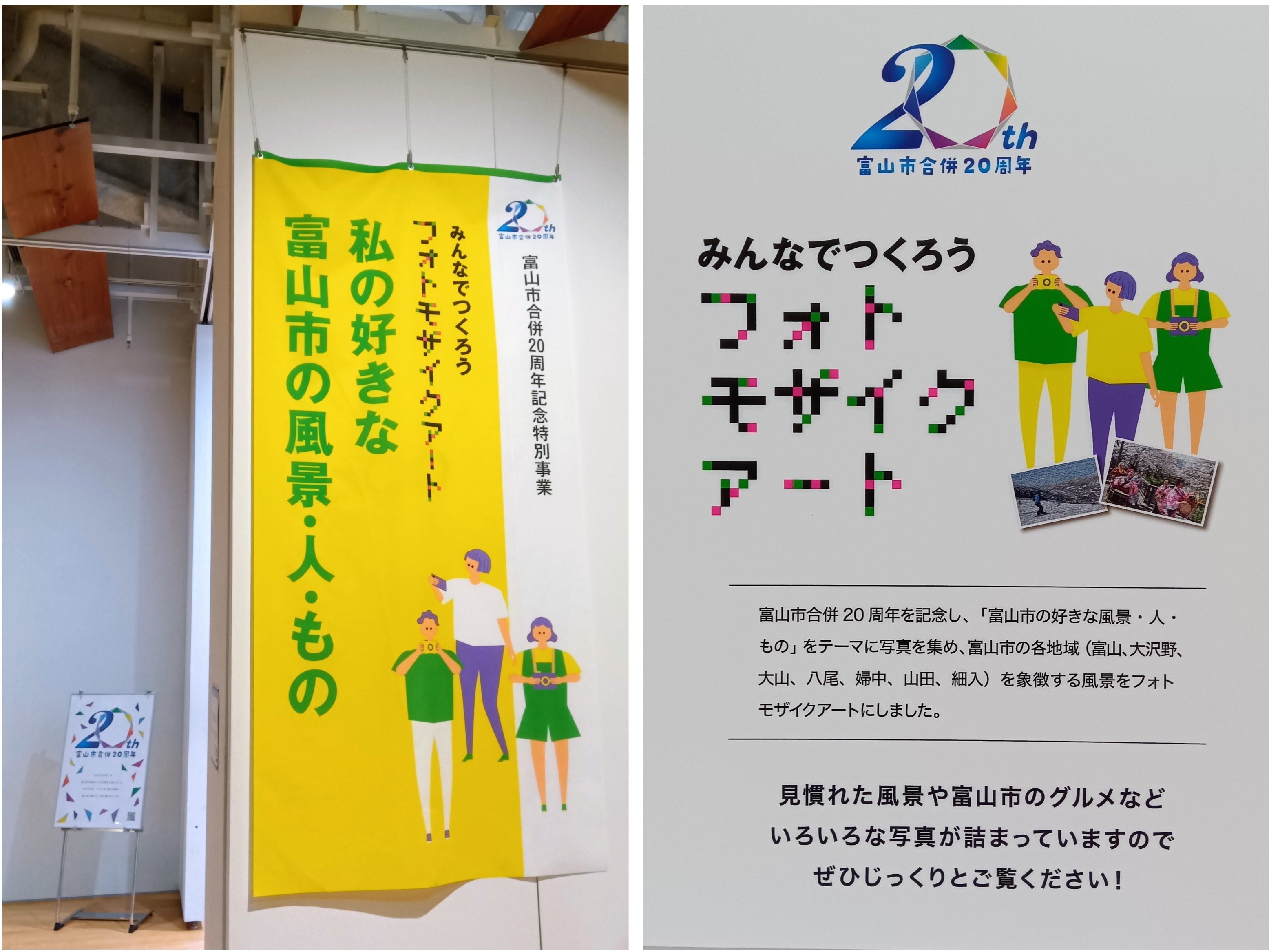 富山市合併20周年を記念して、富山市の各地域を象徴する『フォトモザイクアート』が制作されました。アート用の写真は、「私の好きな富山市の風景・人・もの」をテーマに集められたものです💕